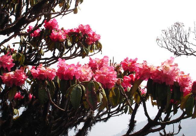 Wide varieties of Himalayan Orchid, Rhododendron and Magnolia flowers and surrounded forest of birch, oak and variety of pine trees.