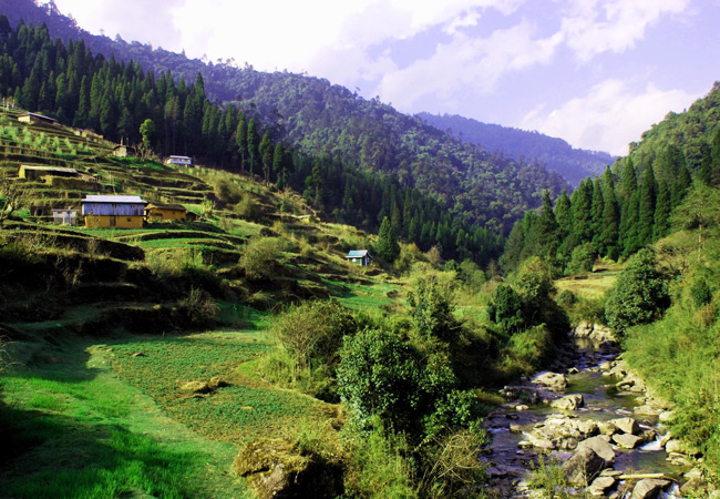 Srikhola/ Sirikhola is situated on the foothills of Singalila National Park at 2000mt altitude surrounded by Singalila National Forest with its pristine natural beauty covered by Rhododendrons, Magnolia, Birch, Oak, Pine and colourful orchids with echoes of natural sounds of Himalayan beautiful and colourful birds and the dancing rhythm of river Siri khola.